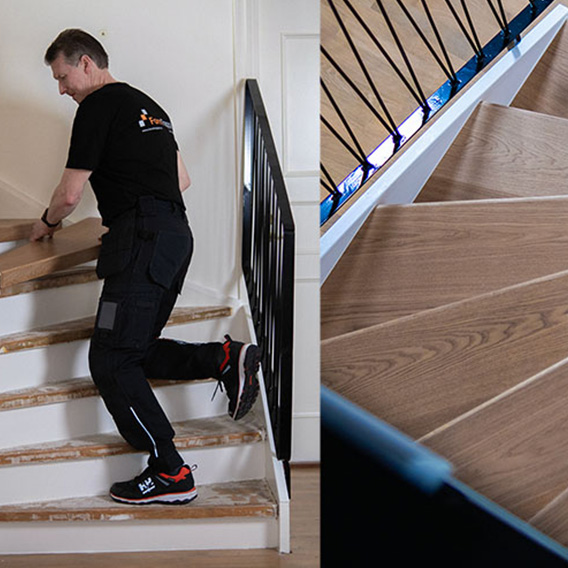 FormTrappan erbjuder kostnadsfritt hembesök som ett första steg i processen mot ny trappa. Du kan välja mellan fyra olika material på trappsteg: